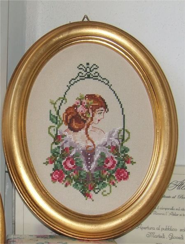 Model stitched on finest 30 ct italian linen "Medievale” by PR (