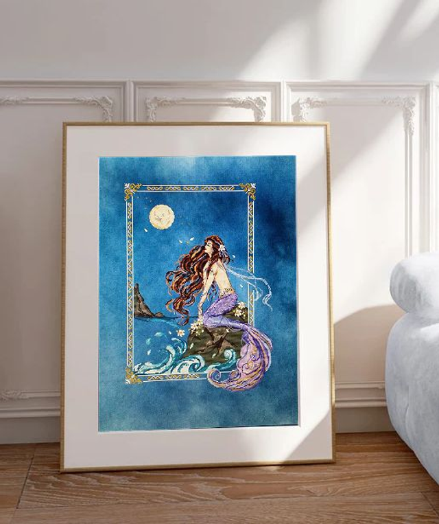 Model should be stitched on hand dyed jobelan or lugana fabric 28ct size 36” x 27” ( 1/2 Yard Cut)