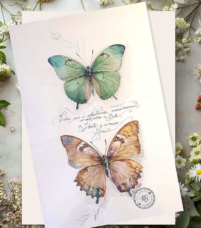 Original Watercolor Painting, romantic Butterflies, Original Not Print,
