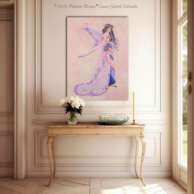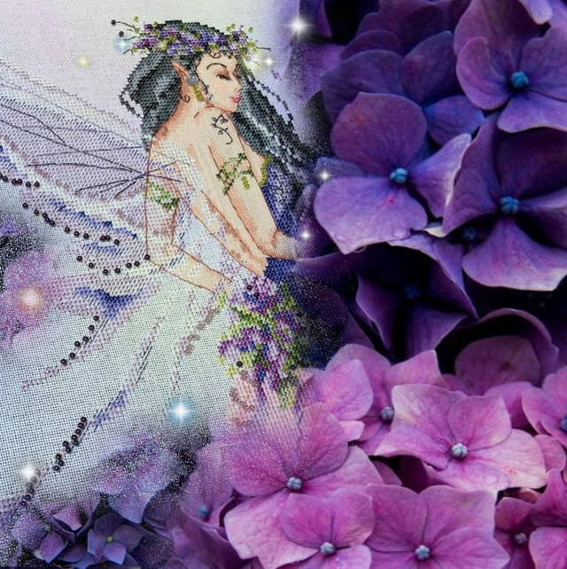 Stitches used: cross stitch, half stitch, back stitck, metallic and beads