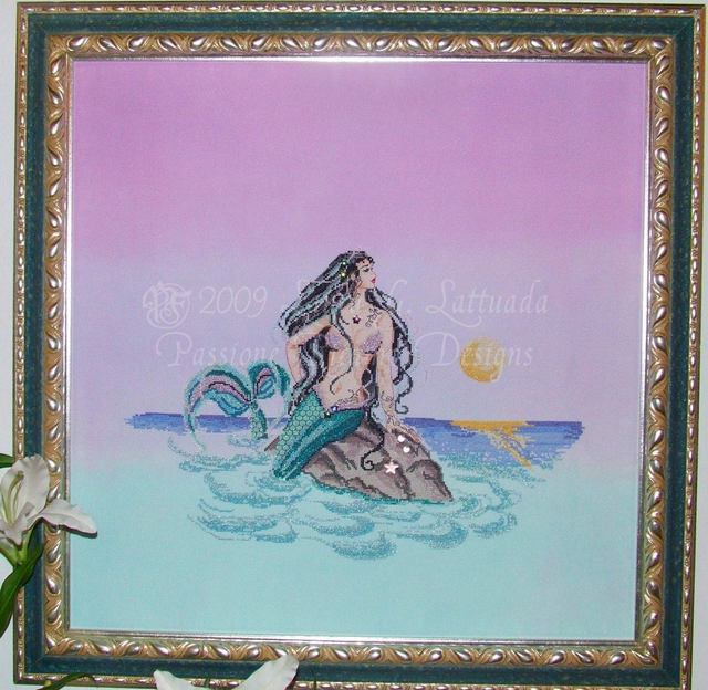 Model stitched on 28ct hand dyed jobelan fabric ”Dolphin Delight” by Polstitches www.polstitchesdesigns.co.uk