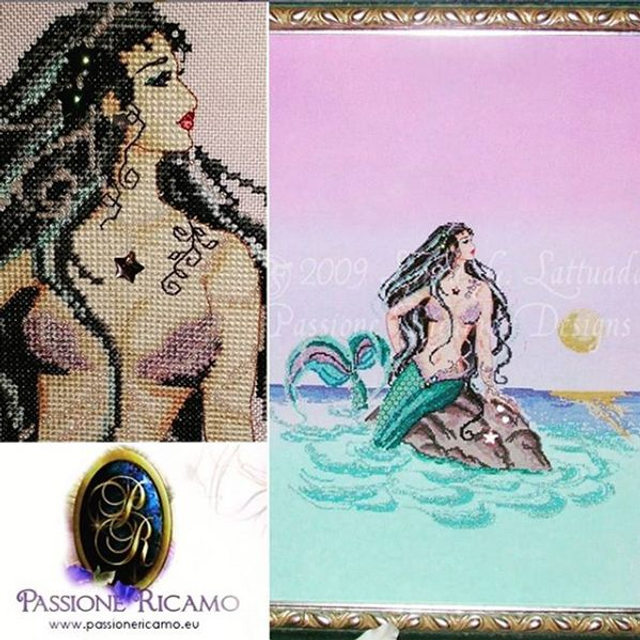 Stitches used: cross stitch, half stitch, back stitck , also special material like metallics, beads and treasure
